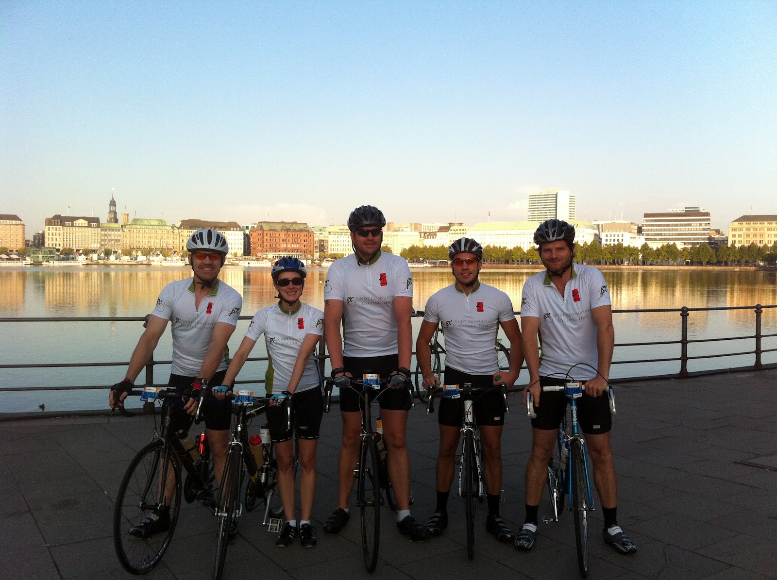 Zu einer sehr unschönen Zeit klingelte der Wecker und auf ging es in die Küche: Um diese Uhrzeit frühstücken ist nicht meine Stärke, aber was rein muss – muss rein. Radklamotten anziehen und Felix auf den Weg abholen. Zusammen sind wir zur Lombardsbrücke, wo schon die anderen drei auf uns warteten.